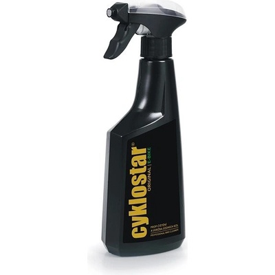 CykloStar originál je profesionální, vysoce účinný a jedinečný prostředek na čištění a údržbu jízdních kol. Snadno, rychle a pohodlně odstraňuje nečistoty a mastnotu. Je vhodný především na čištění silně znečištěných mechanických částí kol (řetěz, kolečka, pedály,...
