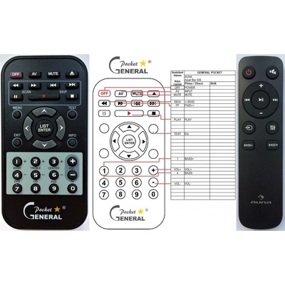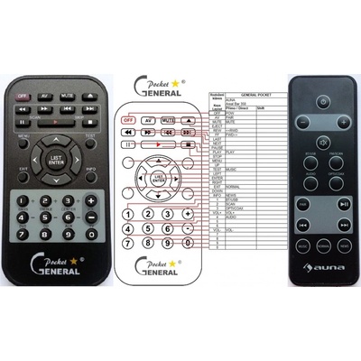 Náhradní dálkový ovladač AUNA Areal Bar 460 - 100% náhrada 1:1 za originální dálkový ovladač. Ovladač je dodáván ve verzi značkového dálkového ovladače General POCKET (zobrazen...