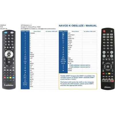 Náhradní dálkový ovladač XSARIUS Galaxy 4K - 100% náhrada 1:1 za originální dálkový ovladač. Dokonalá 1:1 kopie navržená a vyrobená naší firmou – má všechny funkce originálního ovladače pro tyto modely značky XSARIUS:GALAXY 4K. (Nemusí zde být uvedeny úplně všechny...