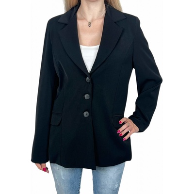 Elegantní černé sako s knoflíky je univerzální kousek, který snadno zkombinujete k nohavicím i šatům. Sako má volnější střih. Modelka měří 168 cm a má na sobě velikost...