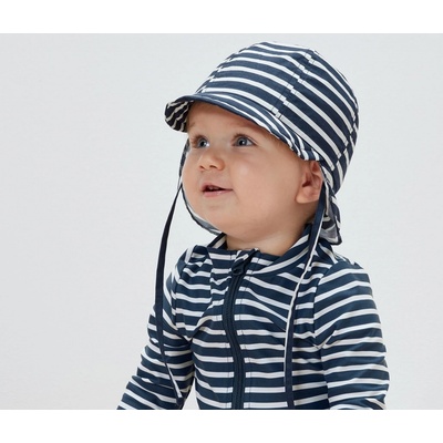 Dětská čepice s UV ochranným faktorem 80, proužky Barva: Proužky v námořnicky modré a bílé barvě Materiál: 100% bavlna (z ekologické produkce)Vatování: 100% polyester...