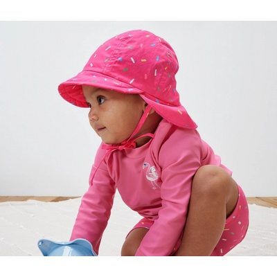 Dětská čepice s UV ochranným faktorem 80, růžová Barva: Růžová s celoplošným potiskem v různých barvách Materiál: 100% bavlna (z ekologické produkce)Vatování: 100% polyester...