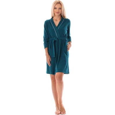Dámský bavlněný župan je barvy tyrkysové. Župan je vyroben ze 100% bavlny a župan má na bocích kapsy, v pase se dá župan stáhnout páskem, který je ve stejné barvě. Pouze u nás...