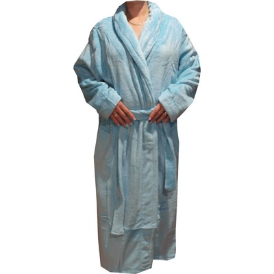 Krásný, měkoučký, hřejivý dámský župan barvy světle modré. Župan je bez kapuce, po stranách má kapsy. V pase jsou po stranách poutka na provléknutí pásku. Skvělý dárek! Další...