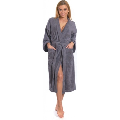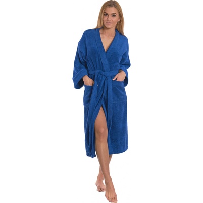 Dámský bavlněný župan tmavě modrý Dámský bavlněný župan v elegantním střihu KIMONO (model bez kapuce) je vyroben z kvalitního certifikovaného froté ze 100 % bavlny. Na župan je...
