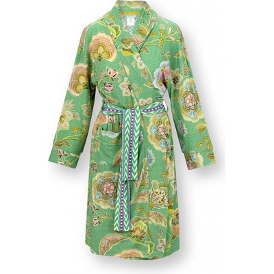 Lehké, velmi ženské kimono s širokým měkkým páskem z kolekce Matata. Elegantní světle zelená barva je bohatě zdobená květinovým motivem. Látka je velmi jemná, splývavá, díky...