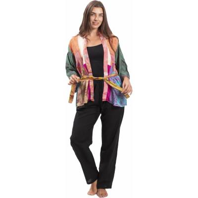 Toto kimono v pestrých barvách můžete nosit jako dlouhé kimonové šaty, svrchní oděv přes plavky nebo doma, jako župan. Každý kus je jiný, originalita zaručena:) Velikost kimona...