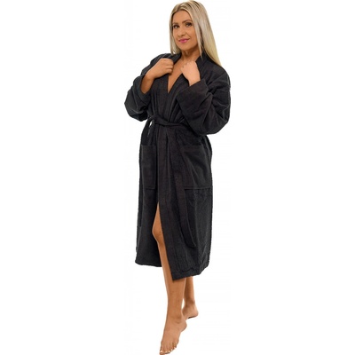 Dámský bavlněný župan tmavě modrý Dámský bavlněný župan v elegantním střihu KIMONO (model bez kapuce) je vyroben z kvalitního certifikovaného froté ze 100 % bavlny. Na župan je...