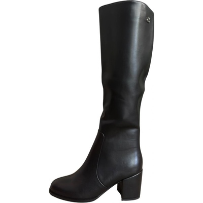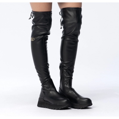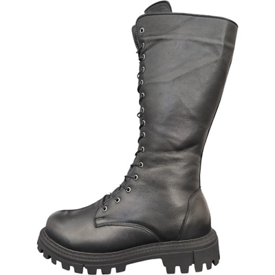 Dámské kozačky černé barvy, vyrobené v kombinaci hladké kůže a kvalitní elastické syntetiky. Kůže je ve spodní exponované části, elastický syntetický materiál v horní části se...