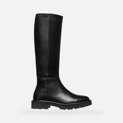Černé dámské kozačky Geox Norize s elegantním vysokým střihem a plochým podpatkem. Kozačky pro dlouhé dny, kdy potřebujete eleganci bez únavy nohou. Vysoký střih chrání kotníky...