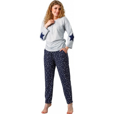 Dámské bavlnené pyžamo Star, z příjemného materiálu, s dlouhým rukávem a dlouhými kalhotami. Vrchní díl pyžama je jednobarevný, s knoflíkovou légou a trendovými záplatami, ve...