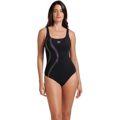 Dámské jednodílné plavky značky Arena. Plavky v sportovně-elegantním designu, moderní verze klasické siluety s atletickým nádechem. Černé s výrazným překřížením na ramínkách a...