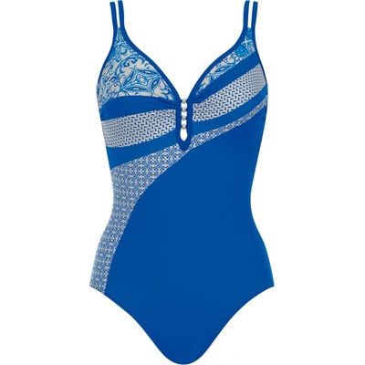 Komfortní dámské plavky SUNFLAIR se zajímavým vzorem laděným do modré barvy. Dámské plavky mají lehce vyztuženou podprsenku s kosticemi. Velmi pohodlná dámská podprsenka je s...