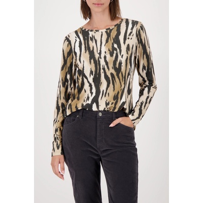 Stylový pulovr s dlouhým rukávem a kulatým výstřhem. Na první pohled zaujme moderním abstraktním vzorem v odstínech černé , béžové, bílé a světle hnědé, který dodává modelu...