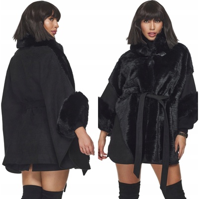 Dámské pončo,semišový kabát s kožíškem. Teplé a efektní Dámské teplé pončo jako bunda, kabát s kožíškem z ekologického semiše. Materiál věrně imituje přírodní kožešinu. Má...