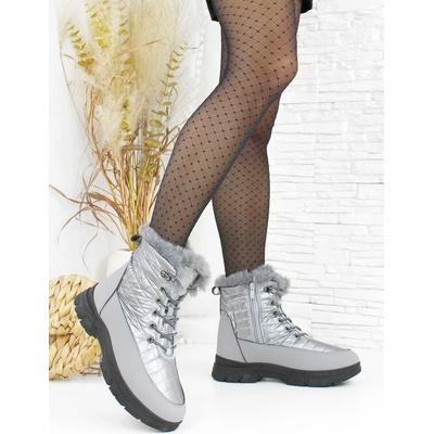 Dámské šedé sněhule Typ zapínání: zip, šněrování Podrážka: hrubý vzorek Zateplení: hrubý kožíšek Materiál: Svršek: syntetika, textil, Podšívka: textil, Podešev: syntetika...