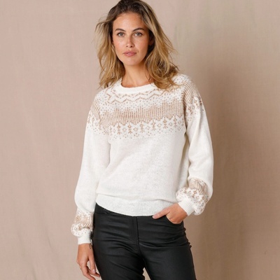 Ikonický žakárový motiv a měděná barva tvoří perfektní kombinaci pro módní pulovr. Skvělý s kalhotami i sukní, záleží jen na Vašem vkusu. Kulatý výstřih. Dlouhé halenkové...