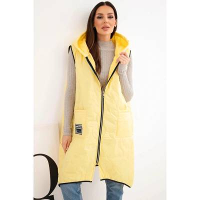 Příjemná dámská vesta z hladkého flísu v délce ke kolenům jednobarevná bez zapínání s kapucí výpustkové kapsy pásek na zavázání zavinovací střih obentlované okraje ležérní,...