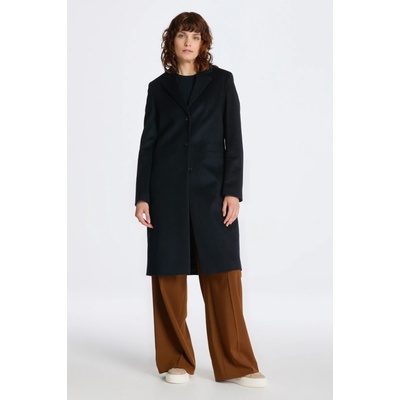 Dámský vlněný kabát s kašmírem. Klasickou úzkou siluetu v perfektním střihu s délkou těsně nad kolena doplňují boční výpustkové kapsy, kontrastní detail pod límcem a kvalitní...