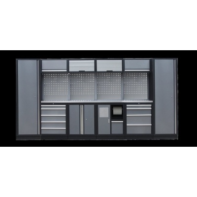 Sestava nábytku TGS1301AY Dílenský nábytek PROFI GREY s nerezovou deskou zaujme moderním a profesionálním vzhledem. Kombinace kladívkové šedé a černé RAL 9004 barvy se...