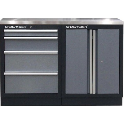 Sestava nábytku TGS1301AG Dílenský nábytek PROFI GREY s nerezovou deskou zaujme moderním a profesionálním vzhledem. Kombinace kladívkové šedé a černé RAL 9004 barvy se...