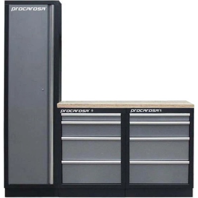 Sestava nábytku TGS1300AA5 Dílenský nábytek PROFI GREY s dřevěnou deskou zaujme moderním a profesionálním vzhledem. Kombinace kladívkové šedé a černé RAL 9004 se...