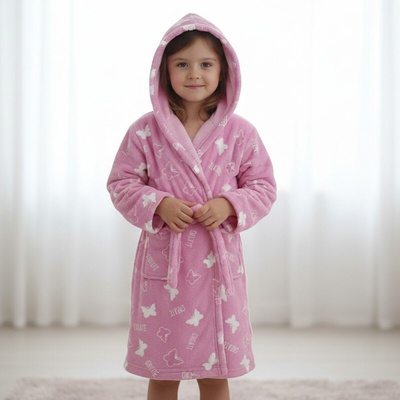 - Dívčí měkoučký župan s límcem - Na zapínání pomocí velkých knoflíků - Dvě kapsy - Rukávy ukončení úzkou lemovkou