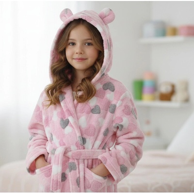 Dívčí župan L&L 2434 dívčí župának značky L&L s kapucí - příjemný měkký materiál- ozdobná aplikace s nápisem LOVE na hrudi- zavazování v pase- pohodlné kapsy na úrovni...