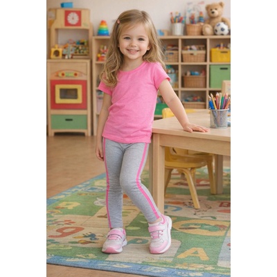 Šedé dívčí legíny se slušivým růžovým lampasem na nohavicích. Legíny budou krásně sedět, jsou výborně pružné a lehce se přizpůsobí postavě. Nízká cena a kvalita je ta nejlepší...