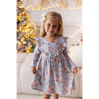 Elegantní světle modré šaty s růžičkami a volánky Tyto nádherné světle modré šaty s květinovým vzorem růžiček jsou navrženy pro malé princezny, které chtějí vypadat stylově a...