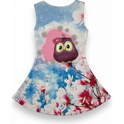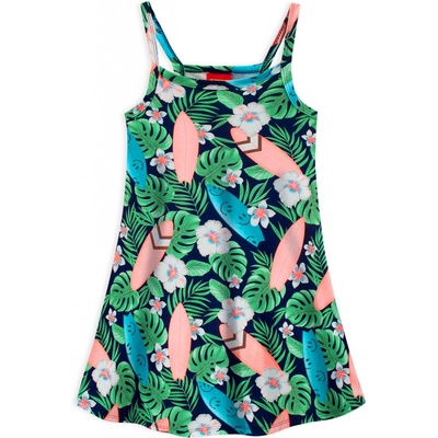 Dívčí letní šaty bez rukávů, s úzkými ramínky. Pohodlný, rozšířený střih. Pružný, měkký úplet s potiskem. Vyrobeno v Brazílii.