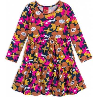 Dívčí volánové šaty s dlouhým rukávem. Potisk květů na pružném, bavlněném úpletu. Vyrobeno v Brazílii.