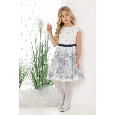 Dívčí šaty/ dětské šaty pro slavnostní příležitosti. Bílé šaty s potiskem květů v modrošedé barvě působí velmi elegantně. Vhodné na oslavu, svatbu, koncert, první školní den a...