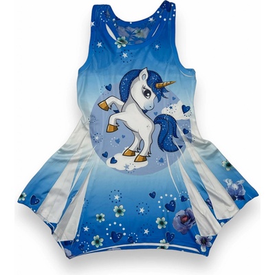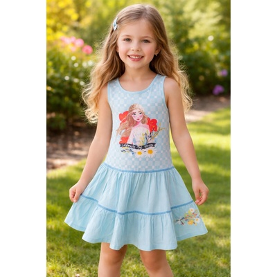 Krásné dívčí šaty s motivem Ledové království - Frozen. Šatičky v modrém provedení jsou vyrobené ze 100% bavlny. Přední stranu zdobí obrázek princezny Elsy.