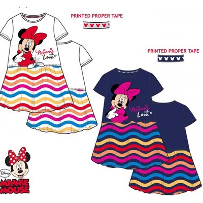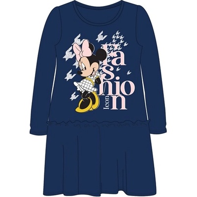 Dívčí šaty s dlouhým rukávem v oblíbeném motivu Disney Minnie Mouse, materiál: 100% bavlna, 160 gsm, barva tmavě modrá s barevným potiskem, velikosti:92 - 2 roky98 - 3 roky104 -...