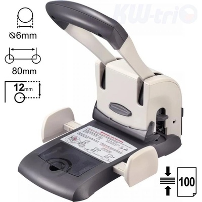 Celokovová velkokapacitní děrovačka s příložníkem. Kapacita děrování 40 listů. Rozteč děr 80mm. Plastové dno základny zabraňuje poškození nábytku.