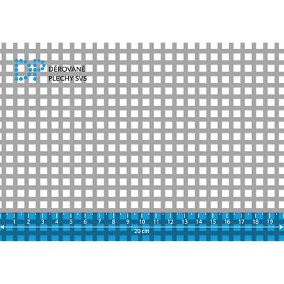 Děrovaný plech čtvercový řadový Fe, otvor: 10x10 mm, rozteč: 15 mm, (1000x2000x2,0 mm)