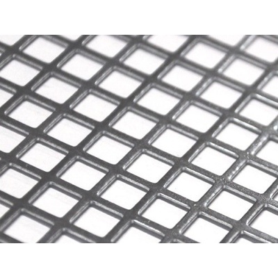 Děrovaný plech - tkanina Zn, otvor: 10x10 mm, rozteč: 18 mm, (2000x1000x1,0 mm)