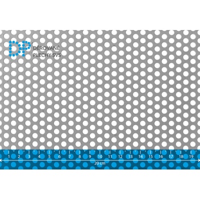 Děrovaný plech ocelový, kruhové přesazené děrování Rv 3-4 mm. Rozměr 1000x2000 mm. Tloušťka plechu 2 mm. Vyrobeno dle DIN 24 041. Jakost DC01/DD11. Hmotnost 15,68 kg. Volná...
