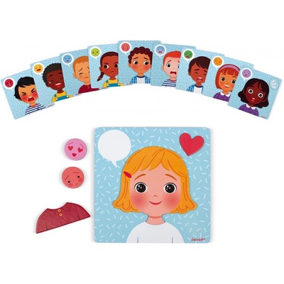 Magnetická drevená hračka pre deti Emócie a pocity Janod s predlohami 20 ks
