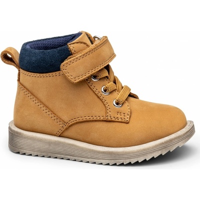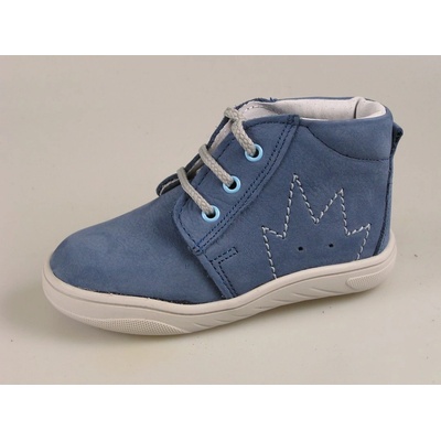 Chlapecké boty jsou vyrobeny z broušené kůže v trendy hnědé barvě. Kolem kotníku je měkký modrý límec. Elastické stahovací šňůrky doplňuje suchý zip. Uvnitř se nachází...