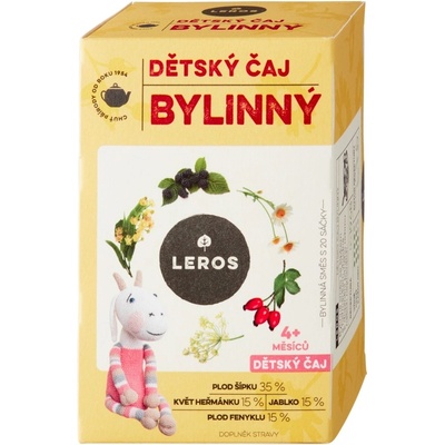 LEROS Dětský čaj bylinný 20x1.8g Leros Dětský bylinný čaj je doplněk stravy ve formě čajové směsi, která je vhodná k doplnění pitného režimu dětí i dospělých. O příjemnou...