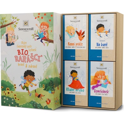 Dárková kazeta, která potěší každého raráška. Kazeta obsahuje čtyři čaje.Ranní ptáče bio – kykyryký, vstávat, čeká nás den plný dobrodružství! Díky této směsi bylinek a ovoce...