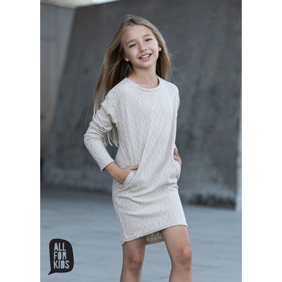 Krásné dívčí šaty pletené s kapsami. All for Kids Dívčí šaty pletené s kapsami béžové Velikostně odpovídá číslům. Materiál: Bavlna 95%, Elastan 5%