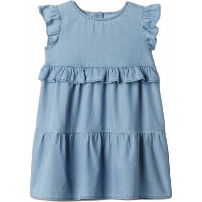 Dívčí šaty s volány GAP BABY mají kulatý výstřih se zapínáním za krkem. Krátké volánové rukávy vypadají stylově. V pase mají našitý volánek.
