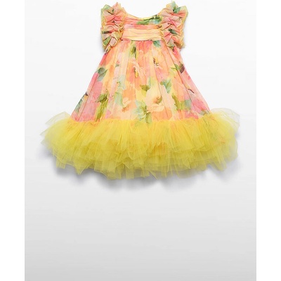 Luxusní dívčí tylové šaty s volánky. Šaty mají příjemnou podšívku, zapínání na zadní straně je na zip. Na sukni je aplikace několika vrstev tylu. Délka šatů je ke kolenům, střih...