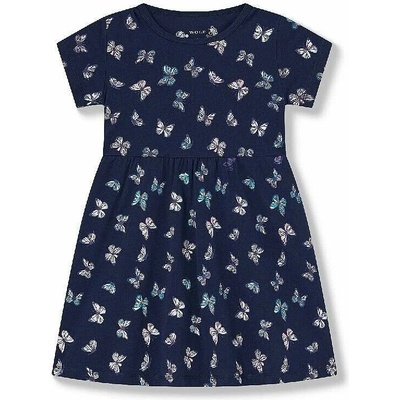 Dívčí šaty s krátkým rukávem Wolf S2514 – tmavě modré s motýlky Velikosti: 104 | 110 | 116 | 122 | 128 | 134 Veselé dívčí šaty značky Wolf, které okouzlí každou malou...