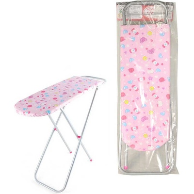 Skládací růžové žehlící prkno s kovovou konstrukcí, s potahem s veselým růžovým motivem, pro všechny malé maminky a pomocnice v domácnosti. Vyžehlit panenkám šatičky teď již nebude problém. Baleno v sáčku. Rozměry balení (š v h): 80 x 23 x 5cm Rozměry dětské hračky (š...