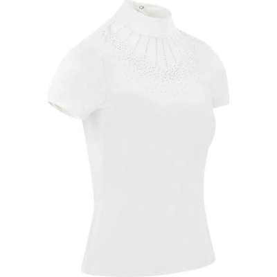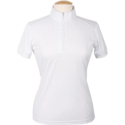 Krásné dětské závodní tričko z příjemného rychleschnoucího materiálu. Zapínání u krku na zip se stojáčkem, zip lemovaný lesklými kamínky. Barva: bílá. Velikosti: 140, 152, 164,...