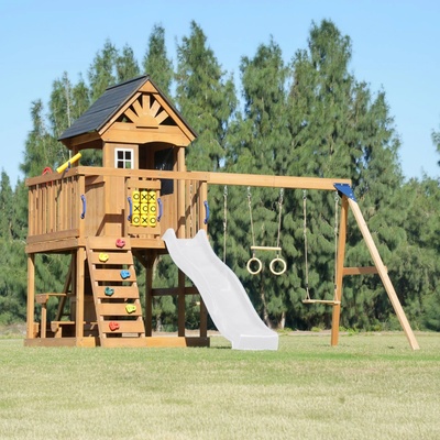 Cena za kompletní hřiště včetně skluzavky, balkonu, ramp, houpakového modulu. Prodloužená 5 letá záruka na veškerý dřevěný materiál. Dětské hřiště Sterling Point se skluzavkou...